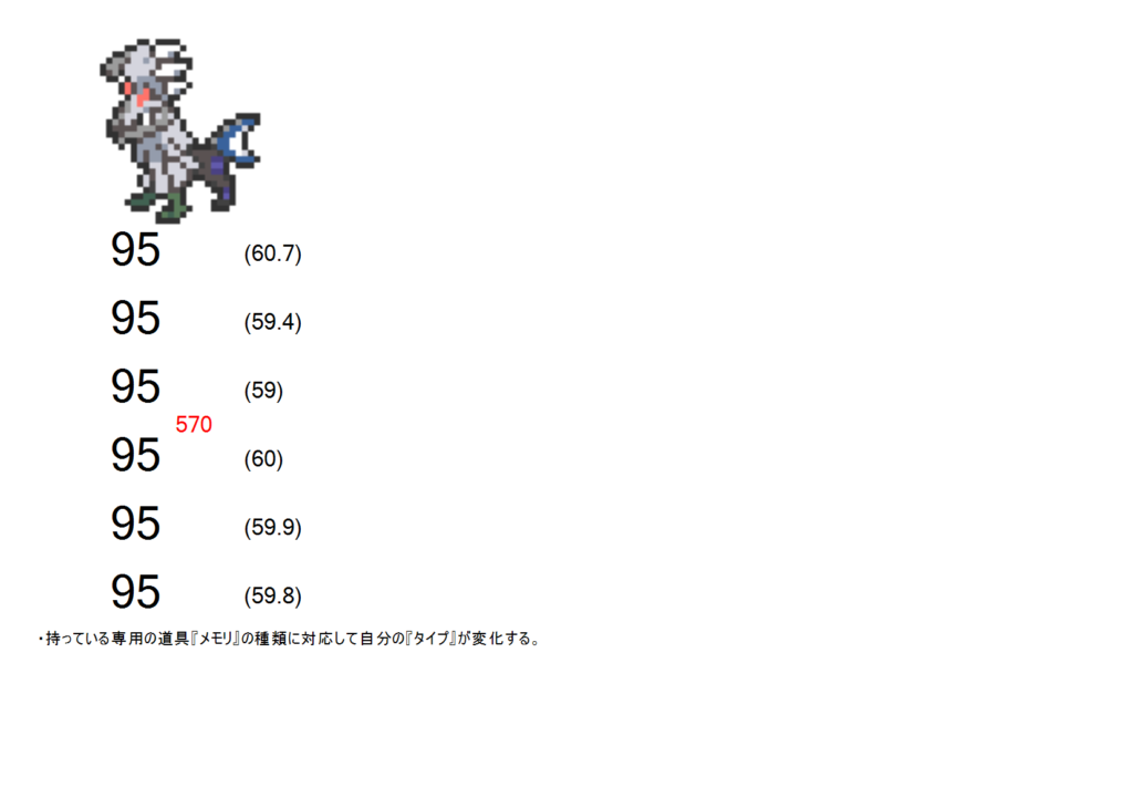 ポケモンの画像、H,A,B,C,D,Sの値とその全体の偏差値、持ちうる特性をまとめた画像です。