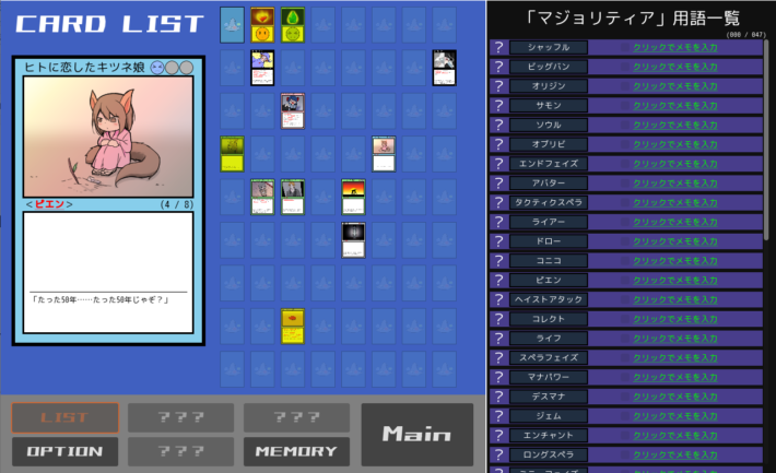 このゲーム、好きなタイミングで今まで出会ったカードを確かめられるのだが、