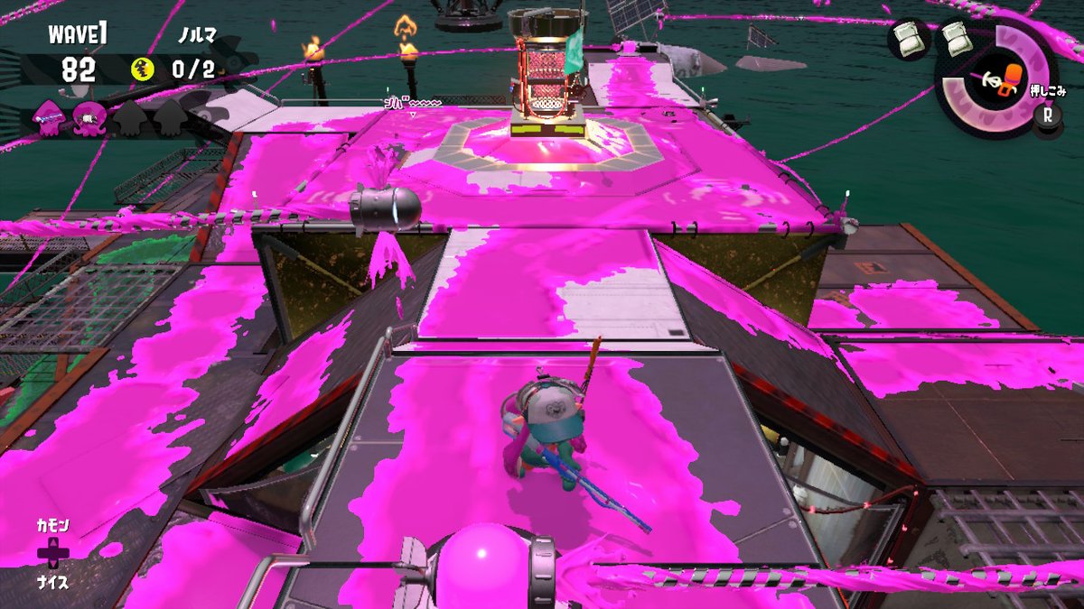 得意なのは、タワーや間欠泉での金シャケ登場時などの連続攻撃が必要とされる場面です。
